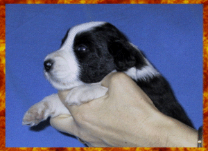 Auf dem Bild bin ich erst wenige Tage alt. Man erkennt mich aber schon gut an meiner kleinen, bereits schwarzen Nase und dem kleinen weißen Zipfel an meiner Halskrause. Na, wer bin ich wohl?